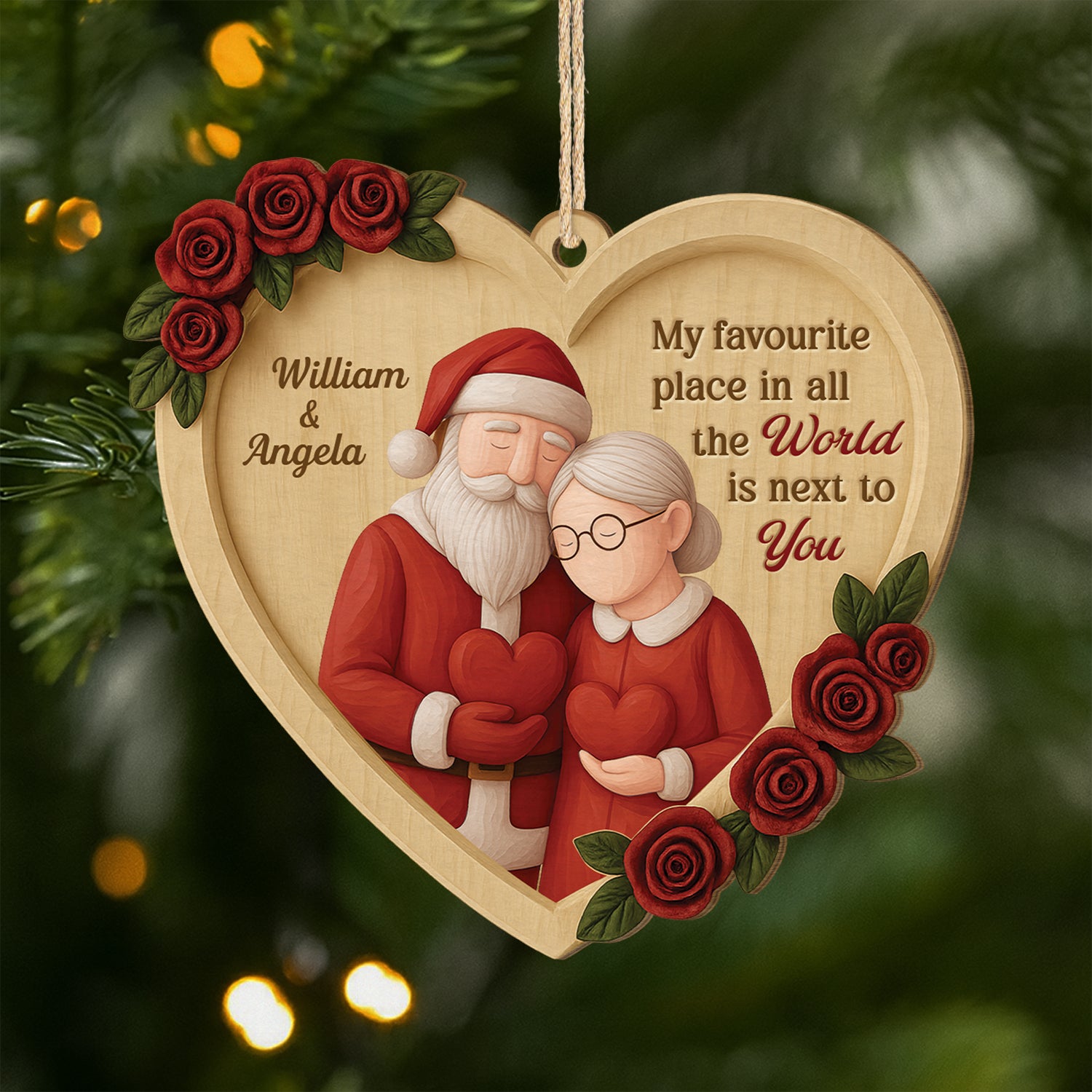 [3D Printing Effect] Personalised 1 Layered Wooden Santa And Mrs Claus Ornament for Couples
