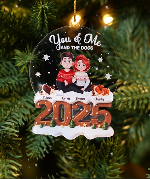 [3D Printing Effect] Personalised Acrylic Couple Ornament With Dog