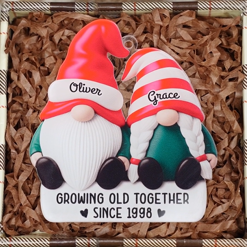 [3D Printing Effect] Personalised Acrylic Gnome Couple Ornament for Christmas