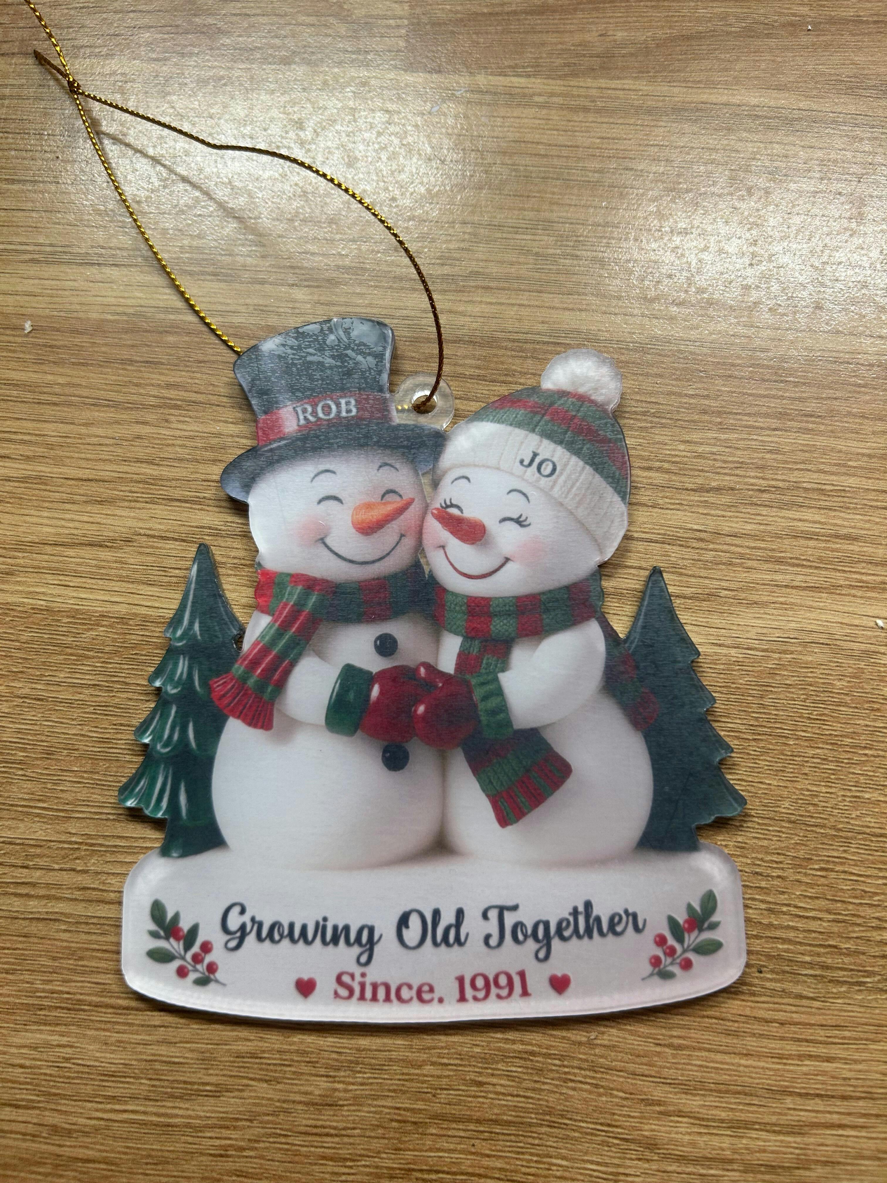 [3D Printing Effect] Personalised Acrylic Snowman Christmas Ornament for Couples