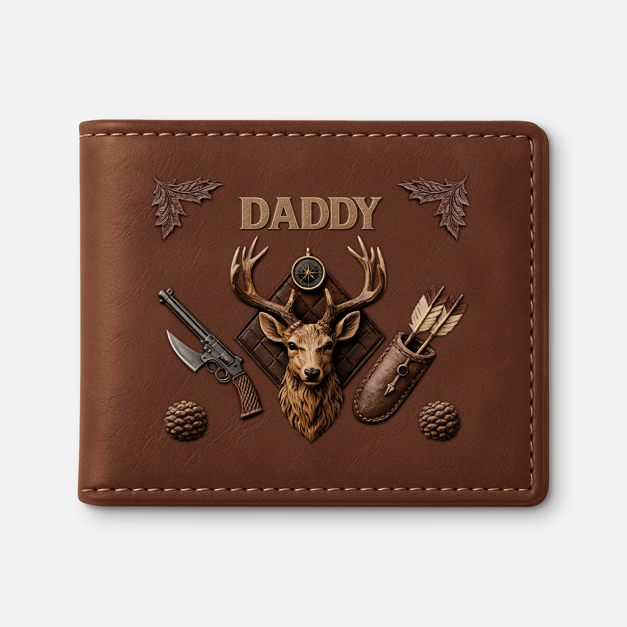 [3D Printing Effect] Personalised Deer Head Leather Wallet for Dad/Grandad