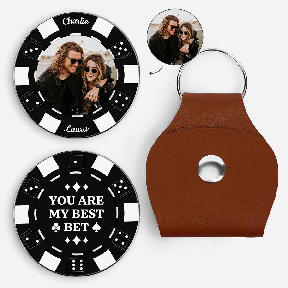 [3D Printing Effect] Personalised Poker Chip Pocket Hug with Photo for Couples