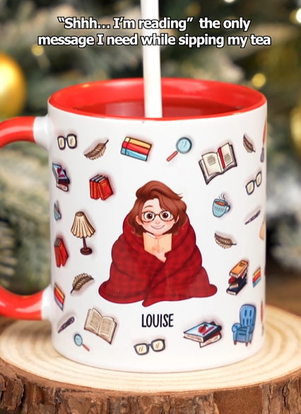 [3D Printing Effect] Personalised Shhh I'm Reading Mug for a Book Lover