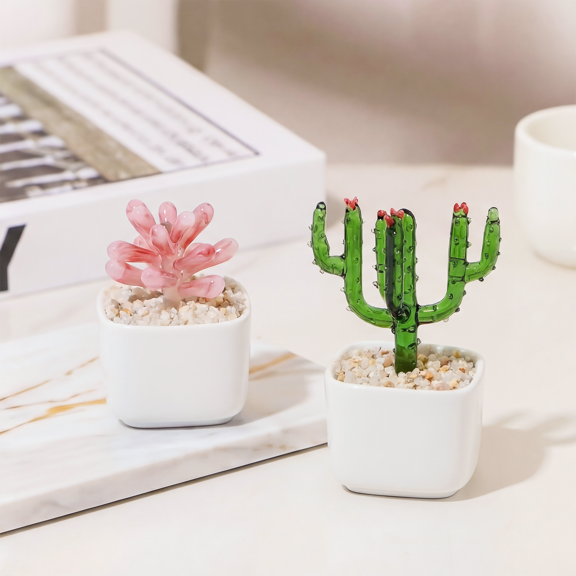 Handmade Glass Potted Plants and Flowers for Her