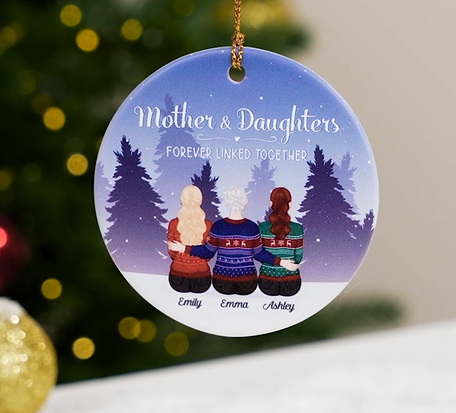 In all the holiday madness, the true meaning of Christmas gift-giving is sometimes overshadowed: to show appreciation and love for one another. So, instead of gifts that can be found somewhere at a roadside store, make this traditional custom more meaningful with personalised gifts. CustomChic is glad to show you our Mother And Daughters Christmas ornaments - an intriguing way to show love.