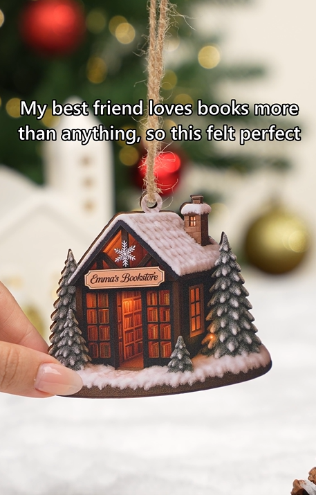 Personalised 1 Layered Wooden Bookstore Christmas Ornament