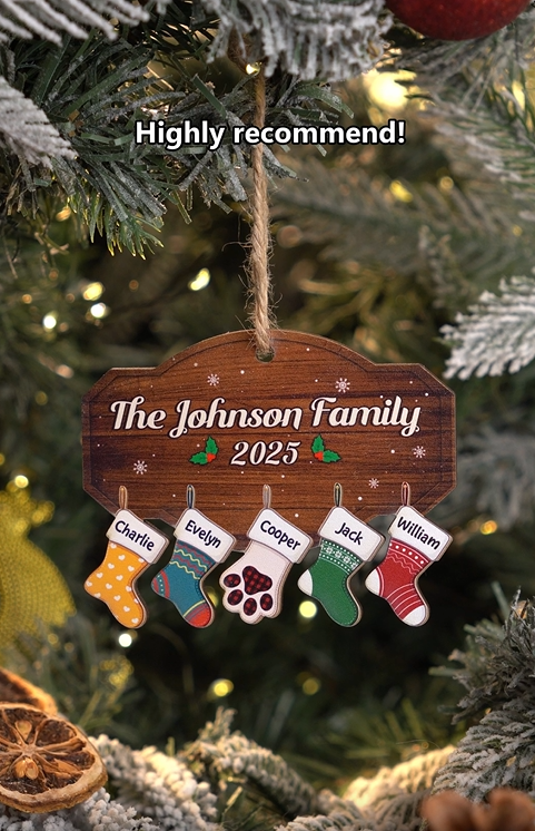 Personalised 1 Layered Wooden Stocking Ornament for Family