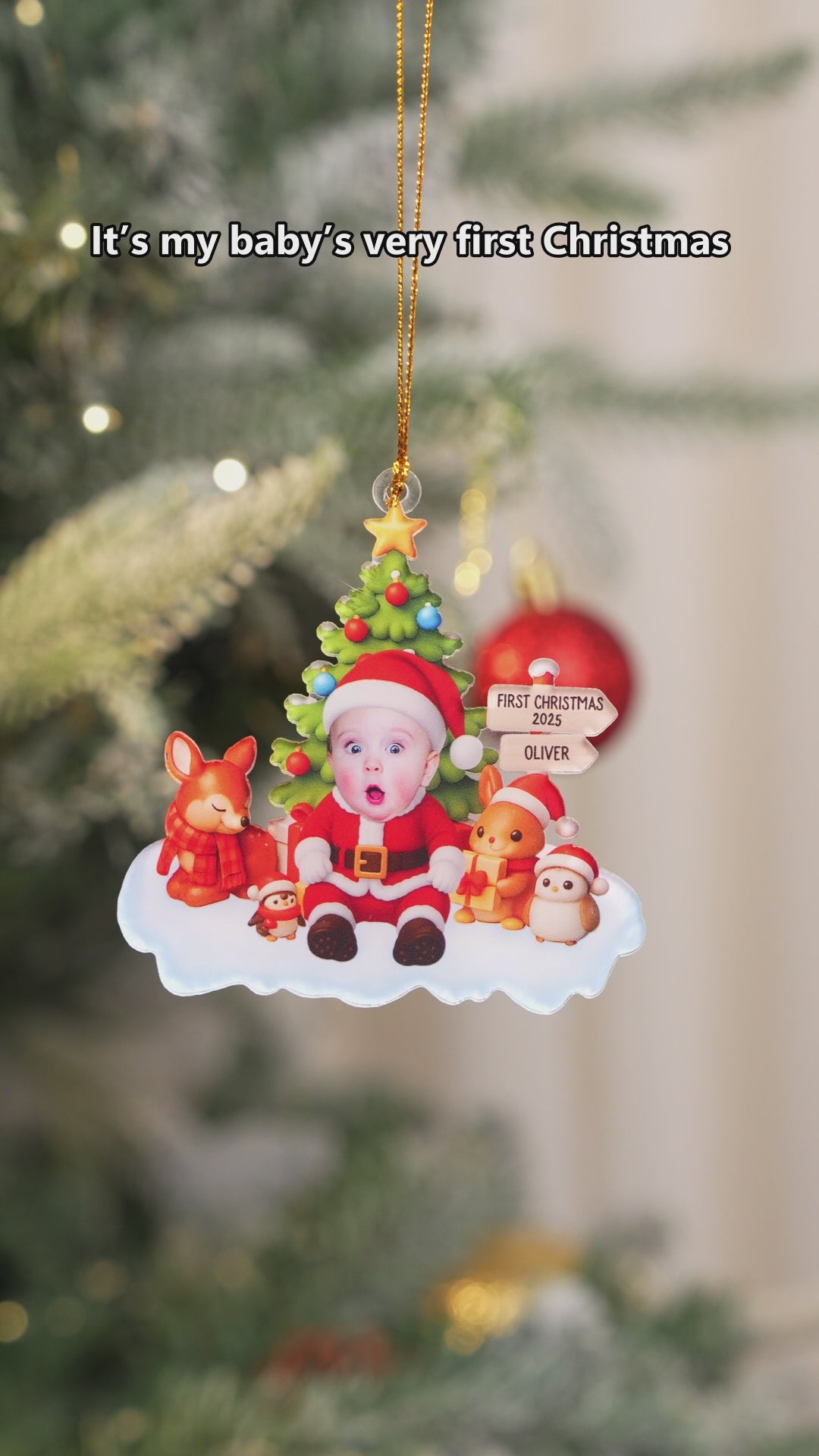 Personalised Acrylic Baby First Christmas Ornament with Face