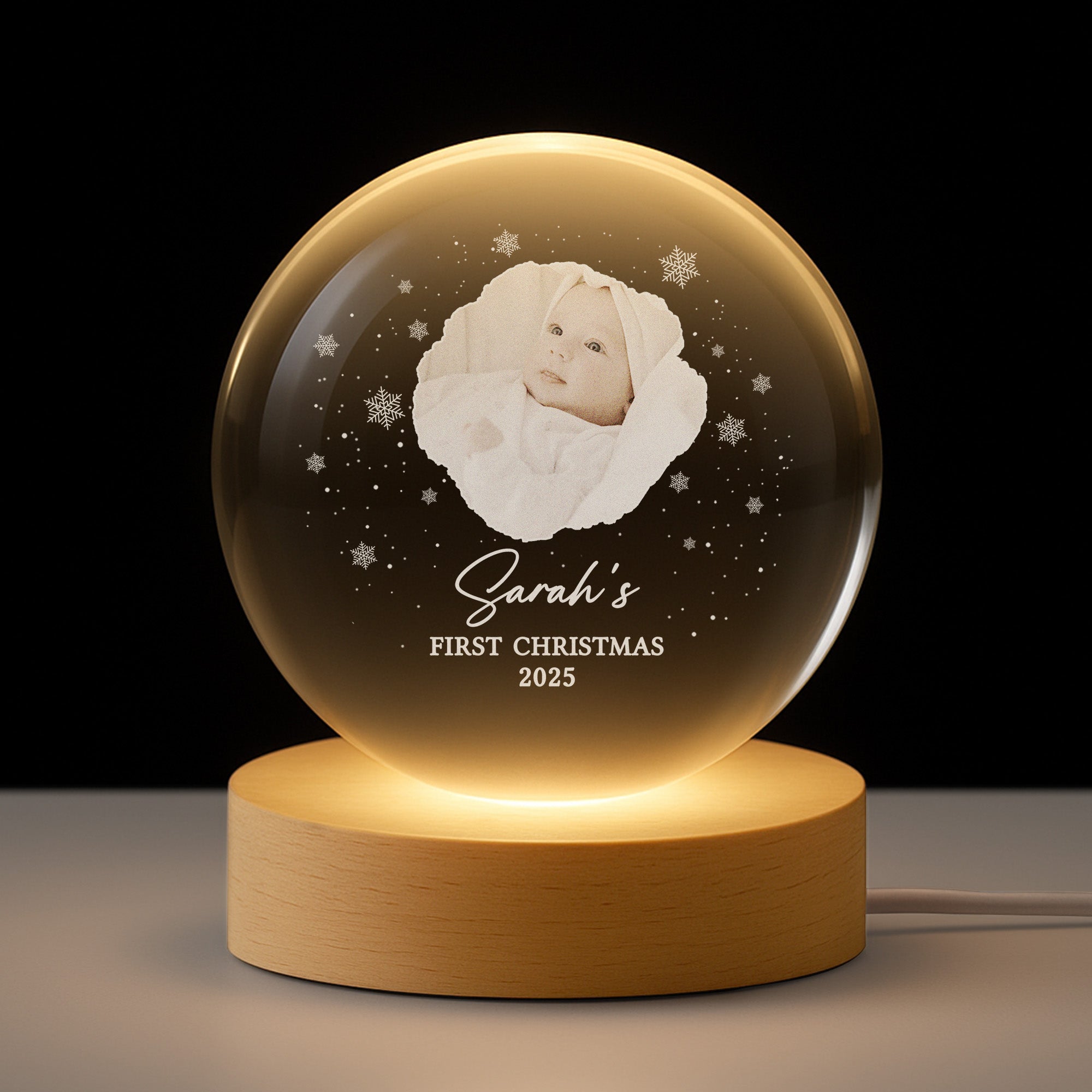 Personalised Baby's First Christmas Crystal Ball Lamp with Photo
