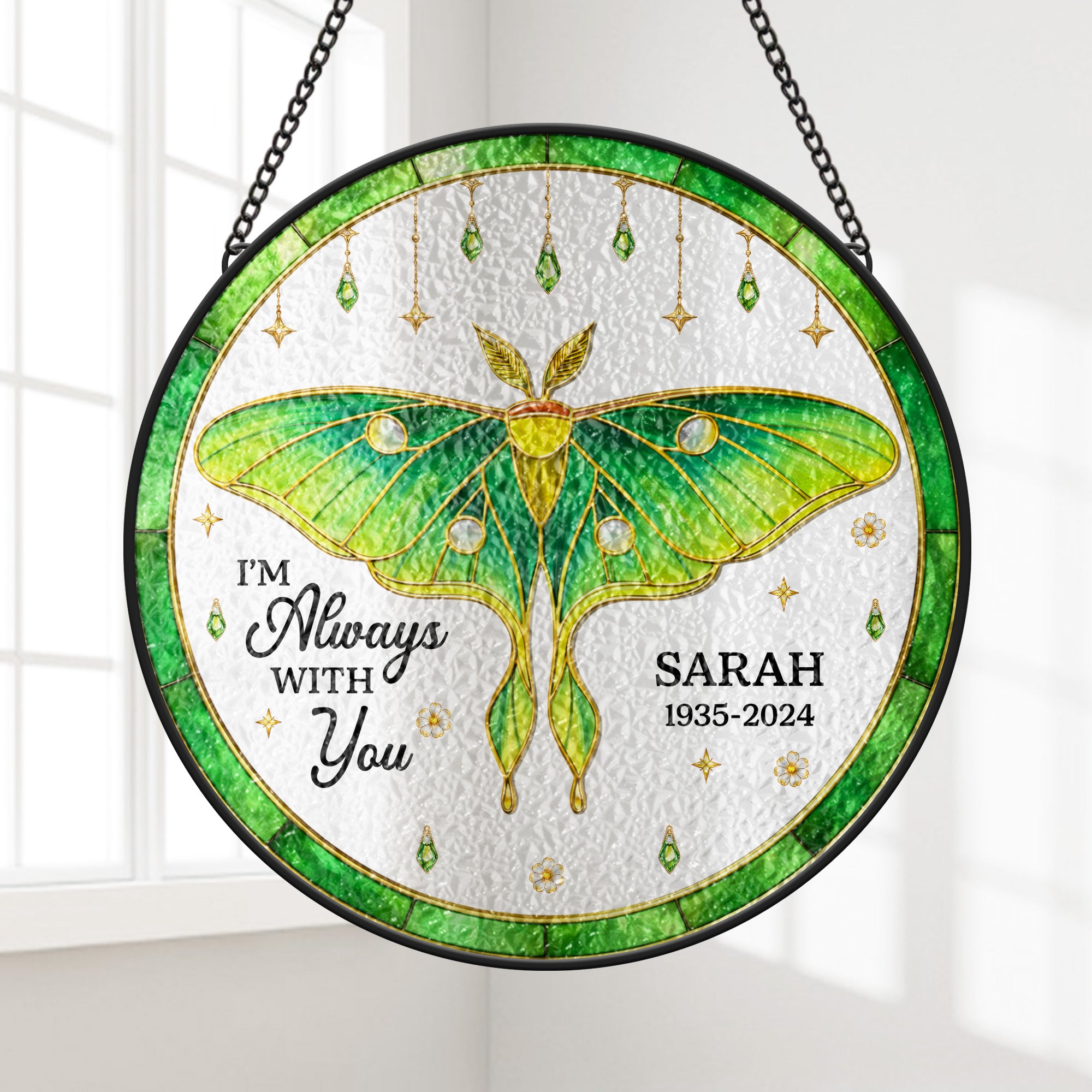 Personalised Butterfly Stained Glass Memorial Suncatcher for Loss of Mum/Dad