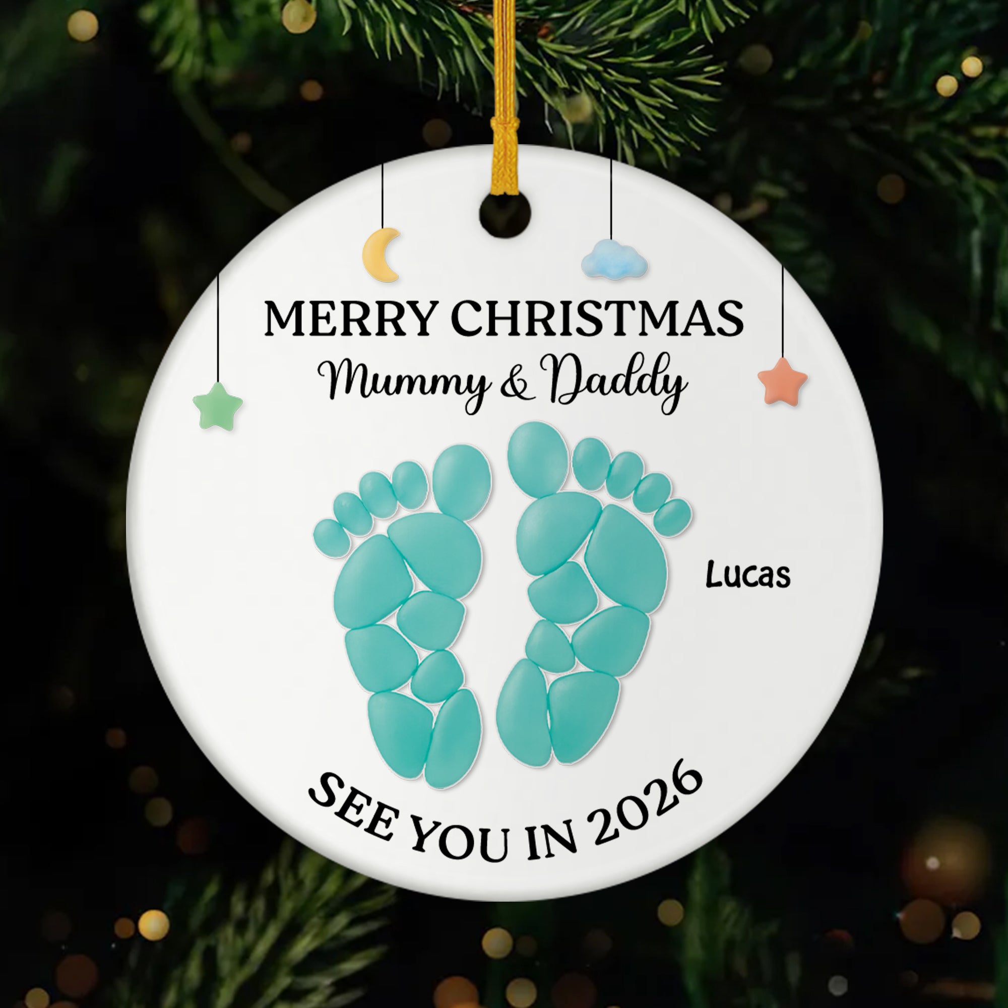Personalised Ceramic Merry Christmas Mummy & Daddy Christmas Ornament from Baby