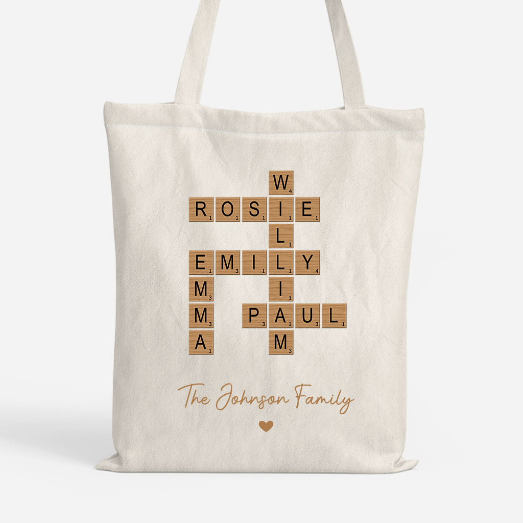 Personalised Crossword Tote Bag with Names for The Whole Family