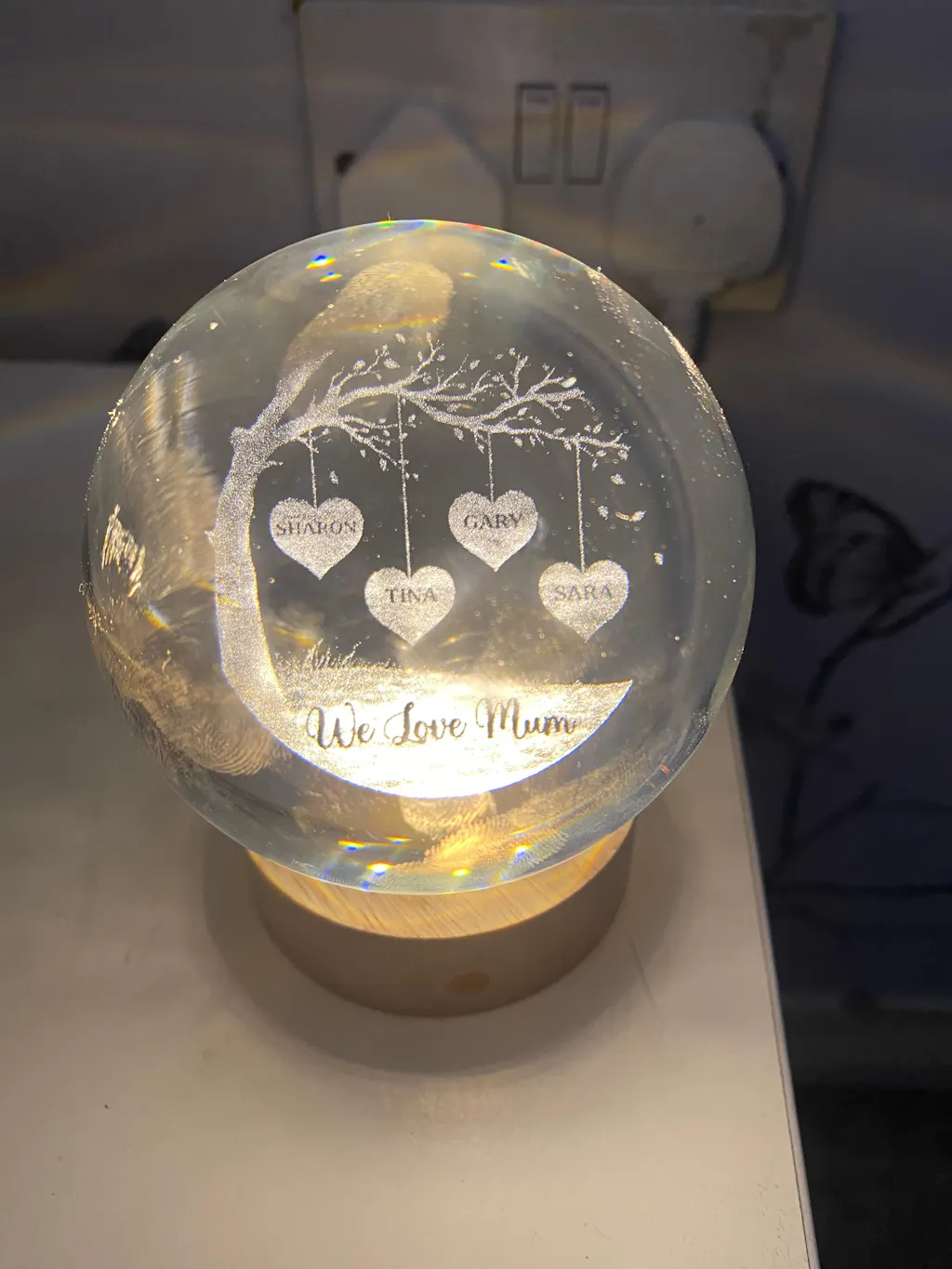 Personalised Crystal Ball Lamp with Names for Mum/Dad