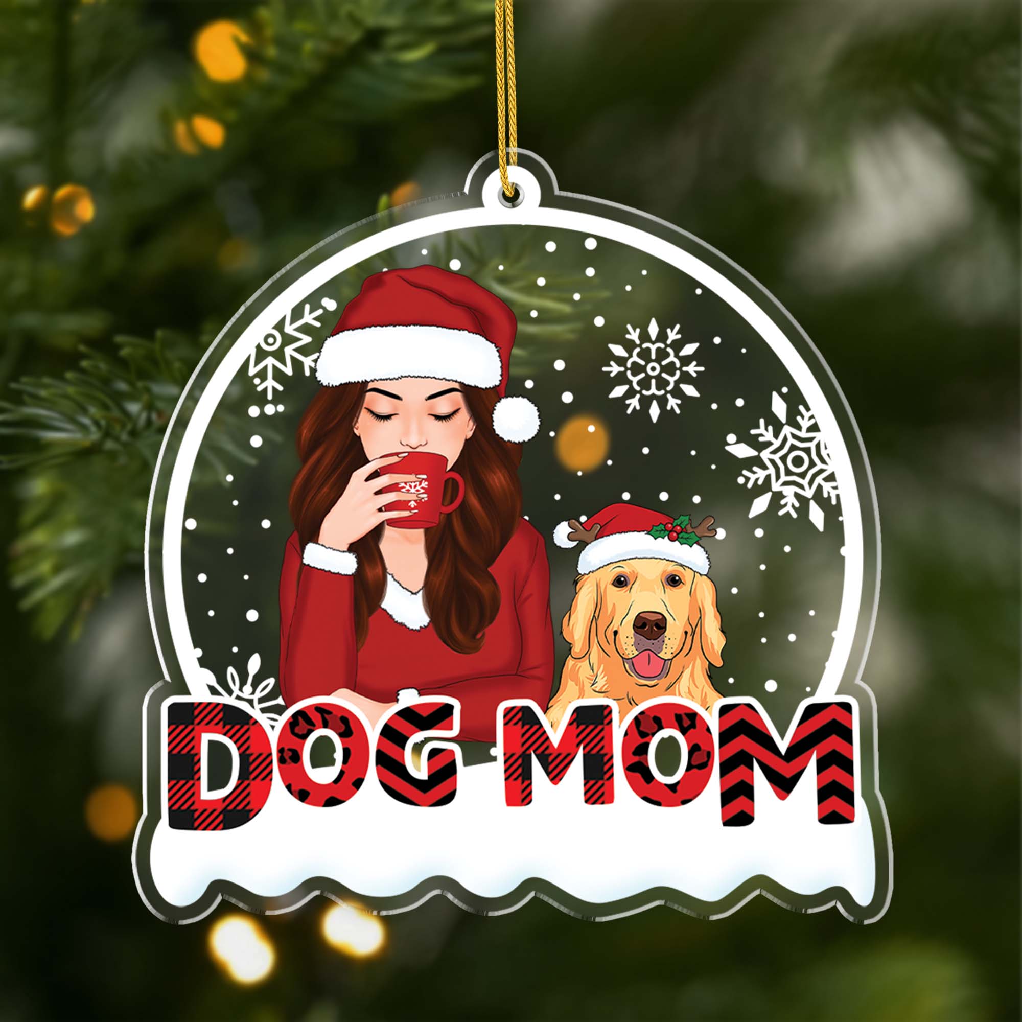 Personalised Dog Mum Red Christmas Ornament