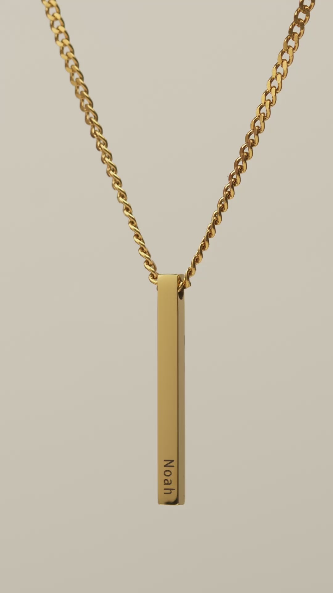 - Engraved Bar Necklace Design: This minimalist vertical bar necklace blends simplicity and sentiment in a timeless design. The sleek, modern bar can be personalised with engraved names, meaningful dates, or short heartfelt messages – transforming a classic accessory into a unique reflection of your story.