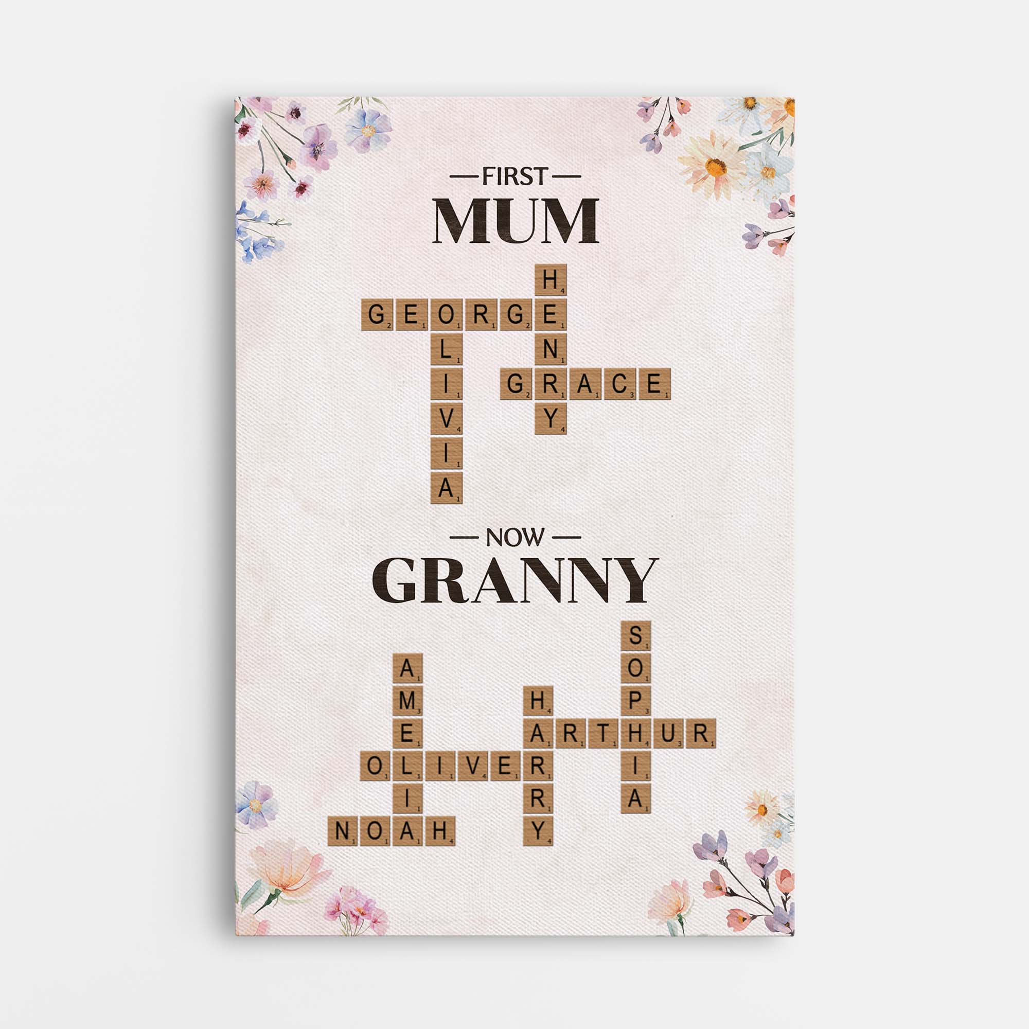 Personalised First Mum Now Granny Canvas with Names