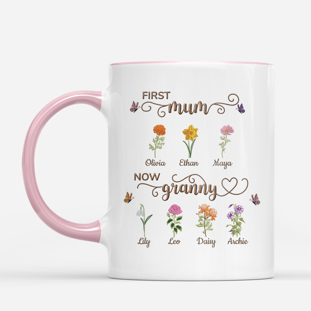 Personalised First Mum Now Granny Flower Mug for Mum/Granny
