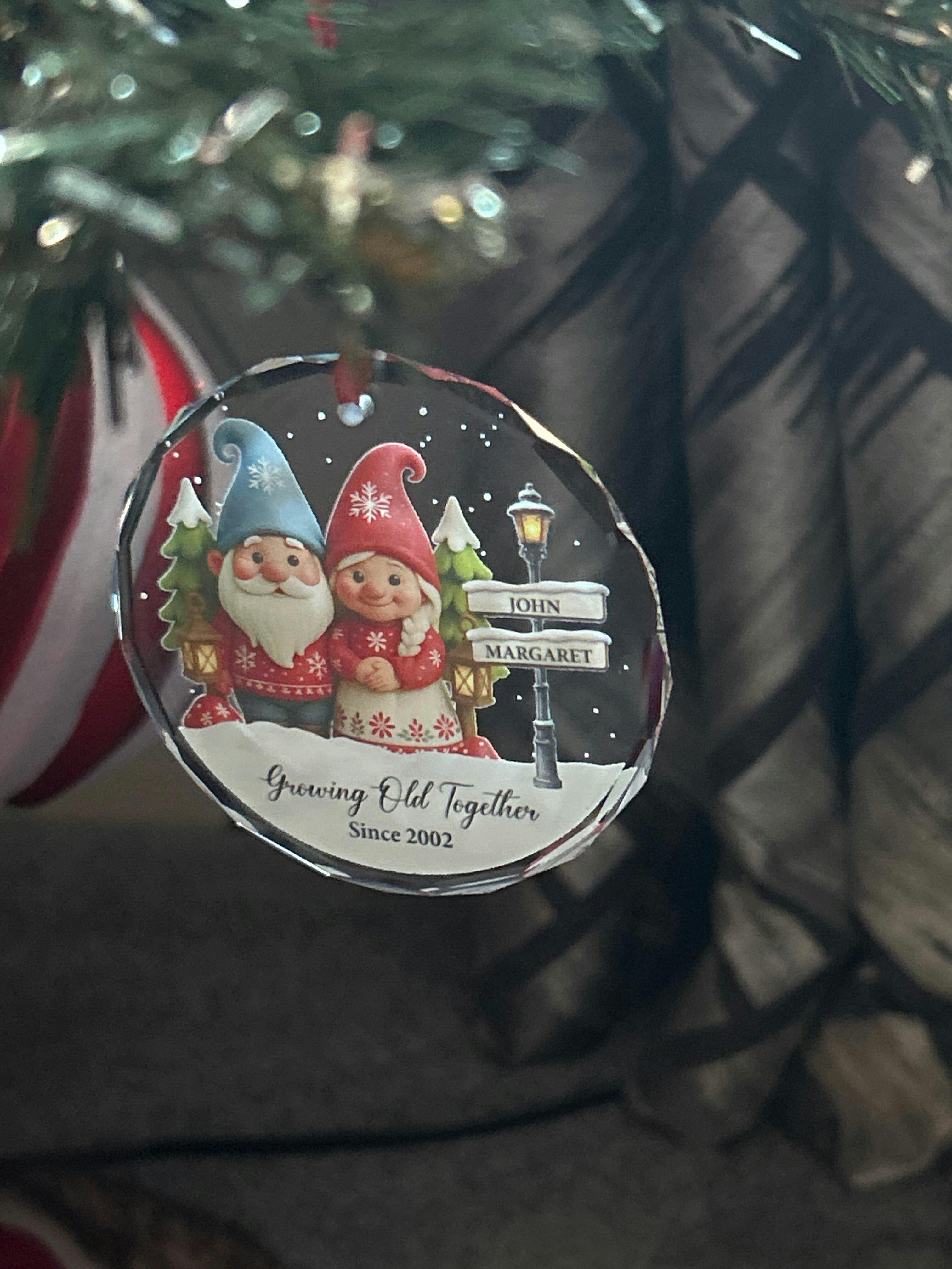 Personalised Glass Gnome Christmas Ornament for Couples