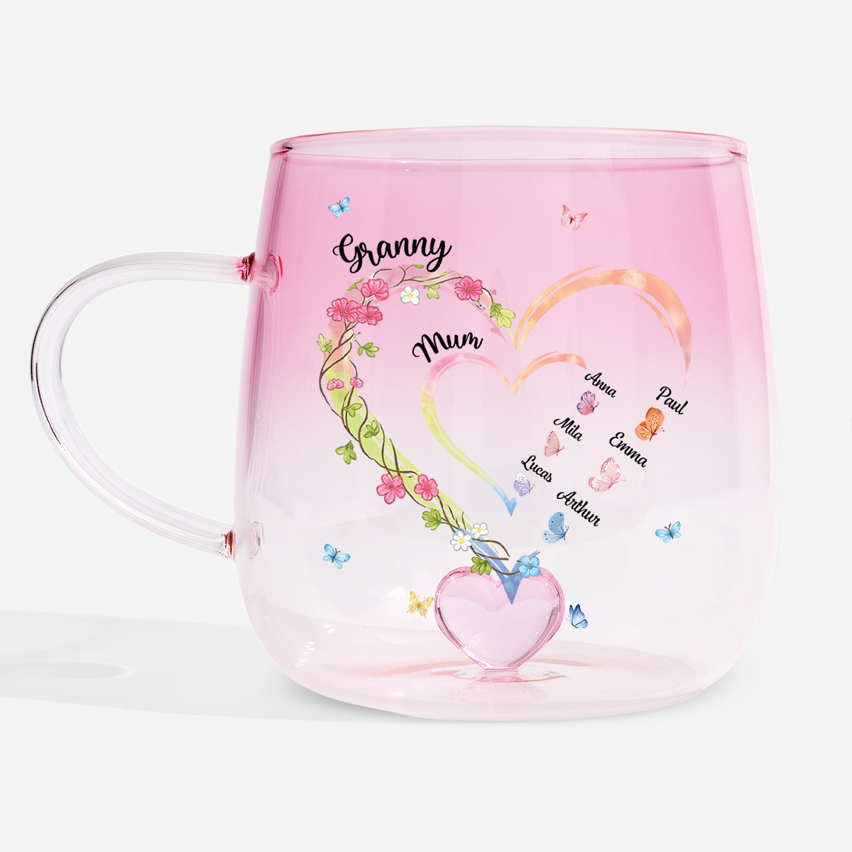 Personalised Granny Mum Heart Gradient Glass Mug with Name for Mum/Granny