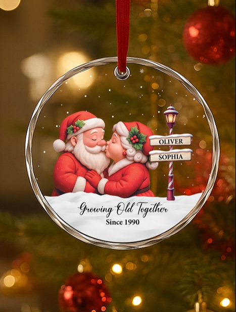 Personalised Growing Old Together Glass Xmas Ornament for Couples