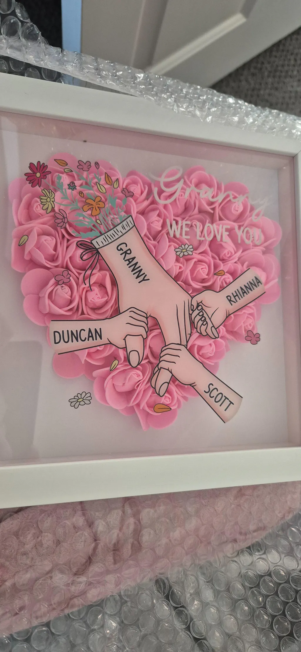 Personalised Hand In Hand Flower Shadow Box for Mum/Grandma