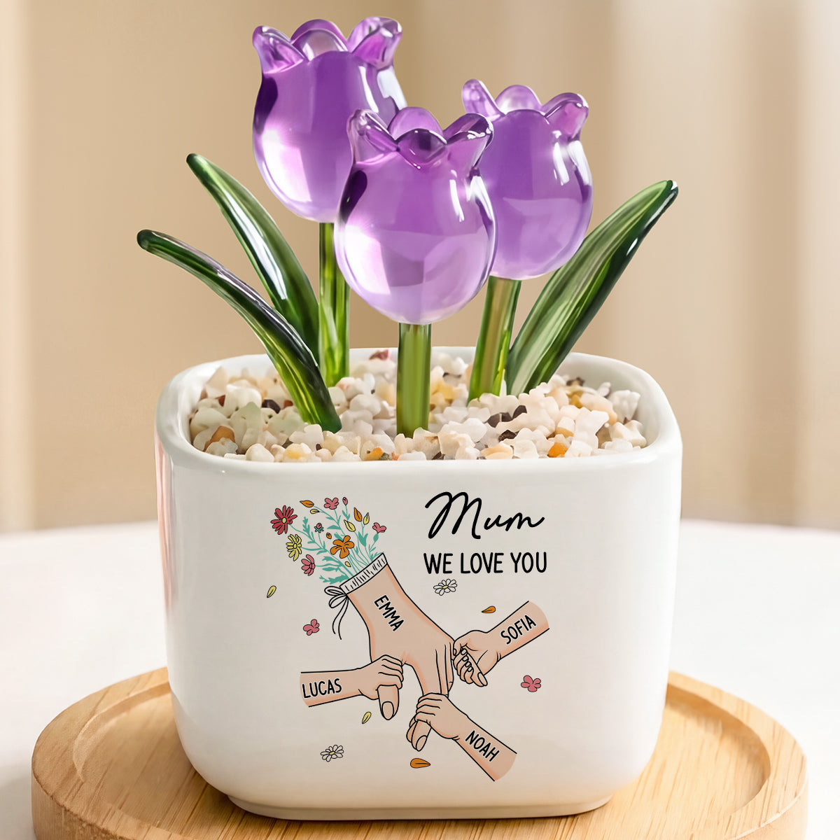 Personalised Hand In Hand Handmade Glass Potted Flowers for Mum/Granny