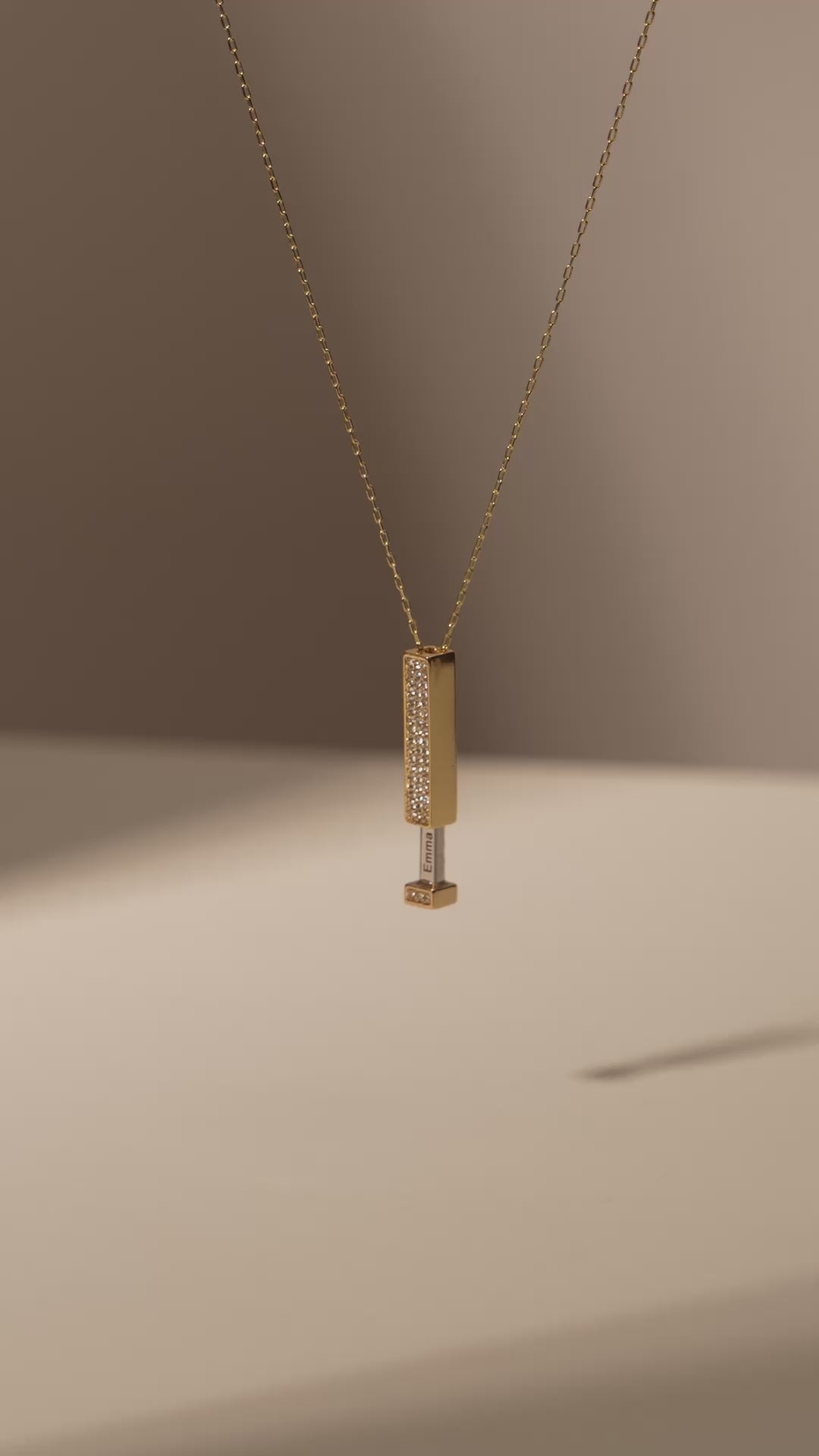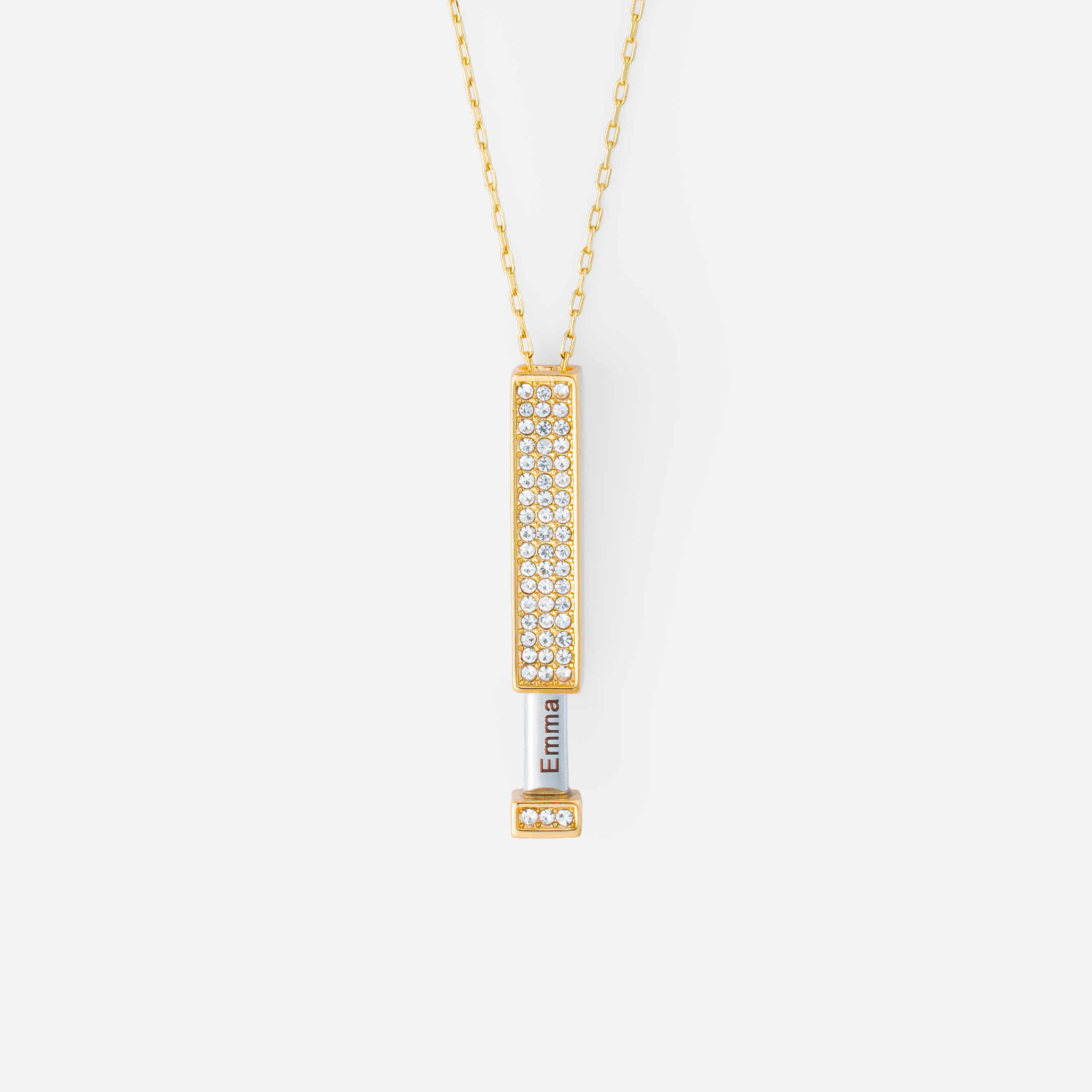 - Hidden Message Bar Necklace: This elegant necklace celebrates your most meaningful connections in a subtle, intimate, and beautifully personal way. The sleek bar design is adorned with sparkling crystals on the outside, while the inner surfaces can be engraved with your private message — creating a heartfelt secret only the wearer knows.