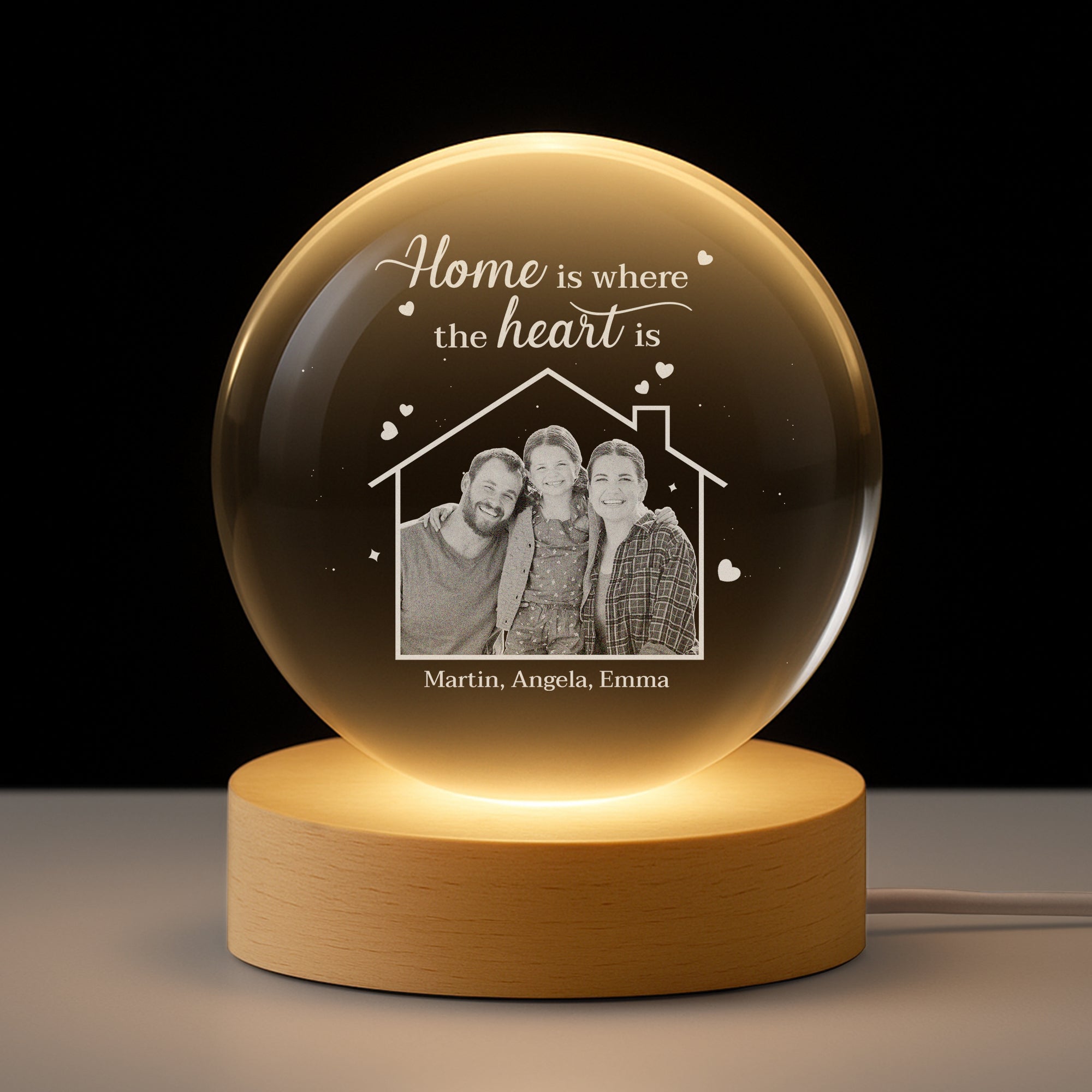 Personalised Home Is Where The Heart Is Photo Crystal Ball Lamp for Couples