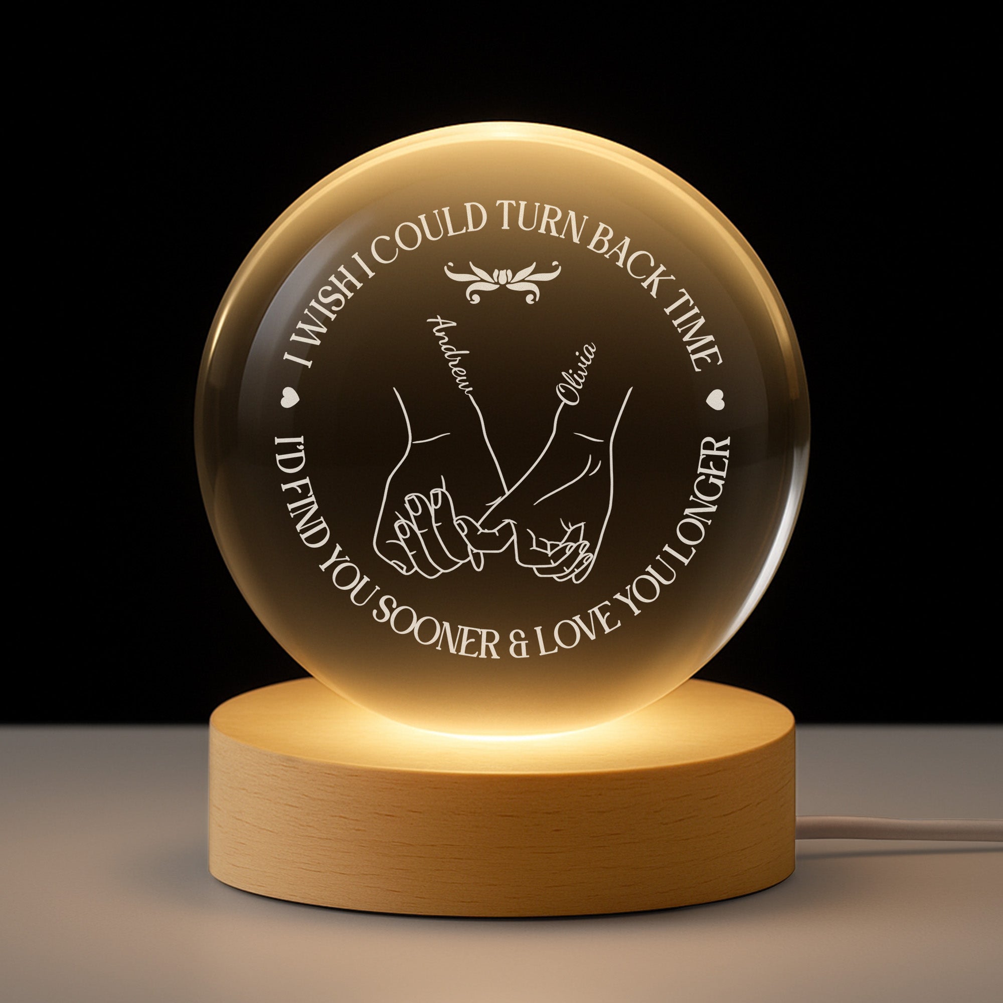 Personalised I Wish I Could Turn Back Time Crystal Ball Lamp for Couples