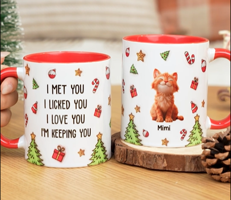 Personalised I'm Keeping You Christmas Mug for Cat Lovers