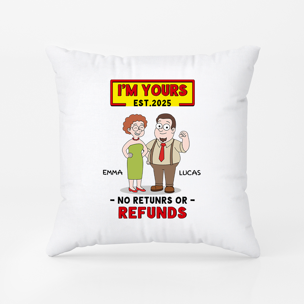 Personalised I'm Yours No Returns or Refunds Pillow for Couples