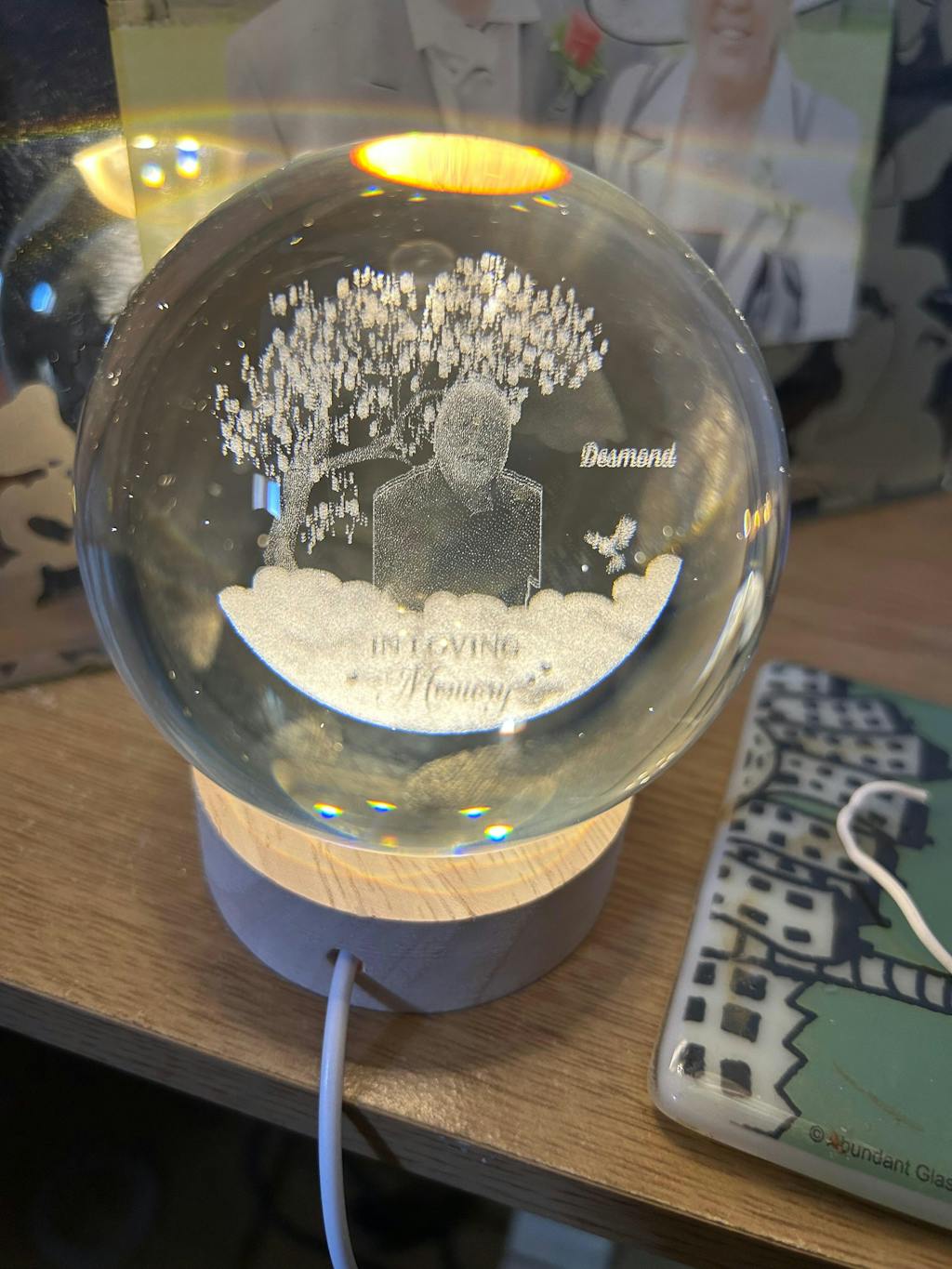 Personalised Memorial Crystal Ball Lamp for Loss of Dad with Photo