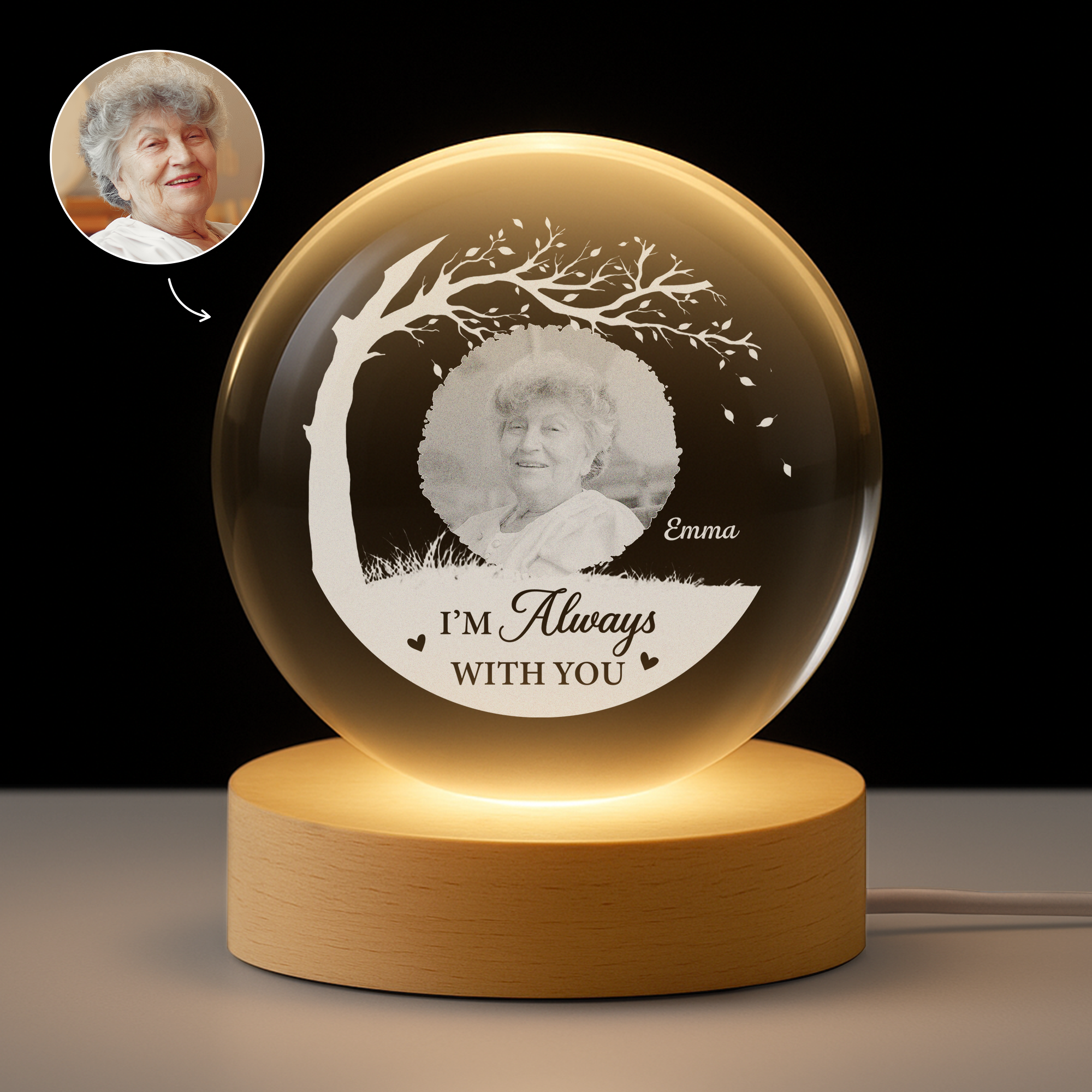 Personalised Memorial Crystal Ball Lamp with Photo for Mum/Dad