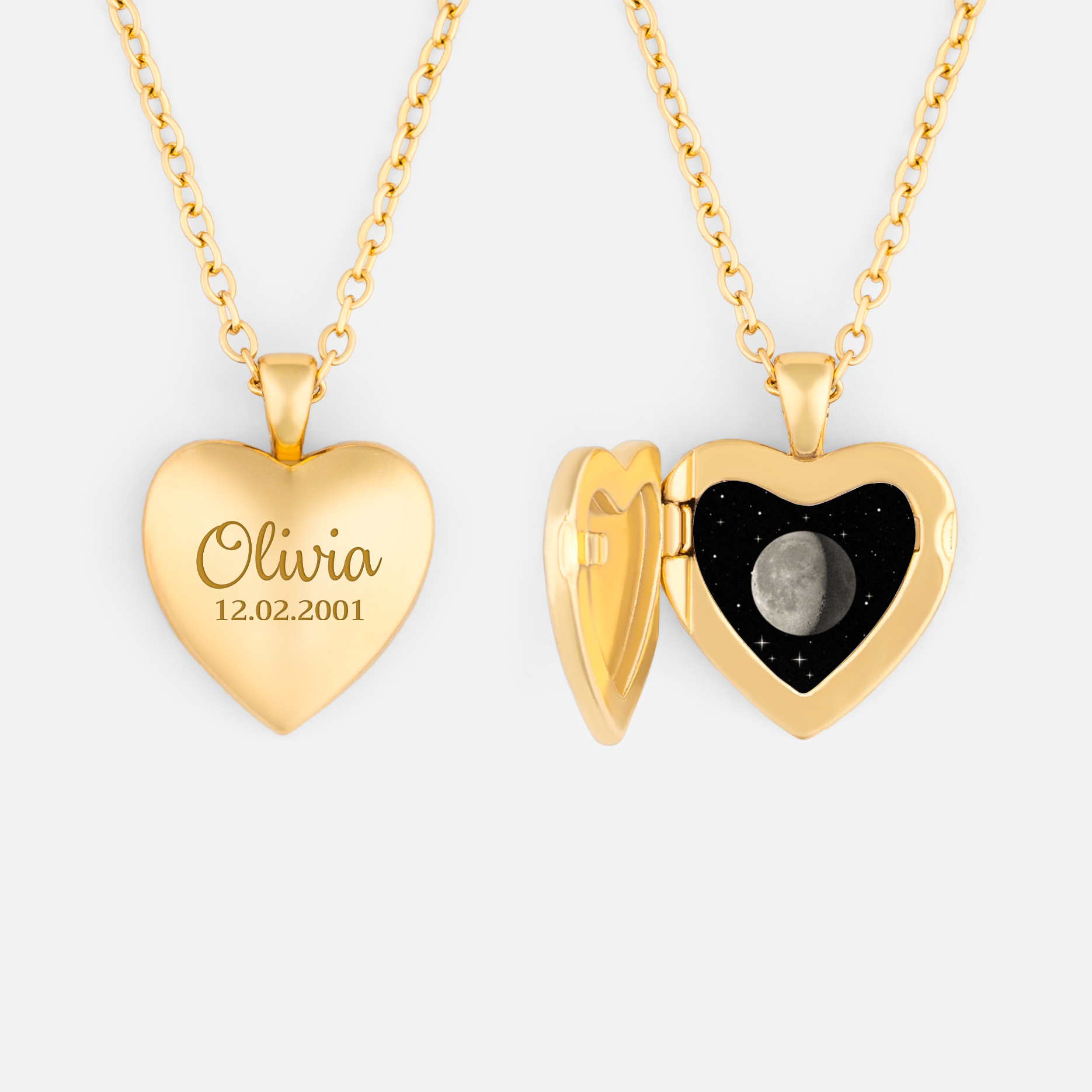 Personalised Moon Phase Birthday Necklace Heart Locket for Her
