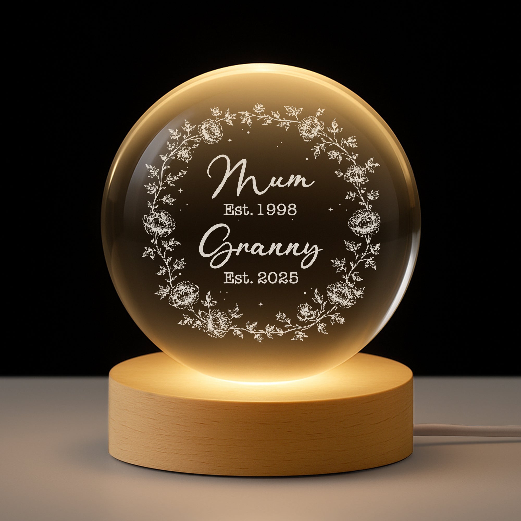 Personalised Mum Est Granny Est Crystal Ball Lamp