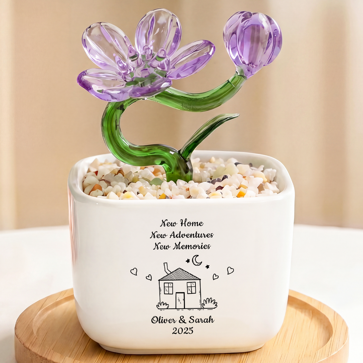 Personalised New Home New Adventure Handmade Glass Potted Flowers for Couples