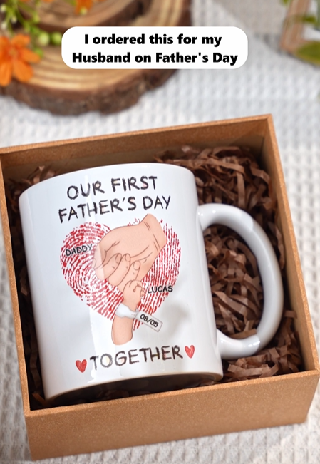 Personalised Our First Fathers Day Together Fingerprint Heart Mug