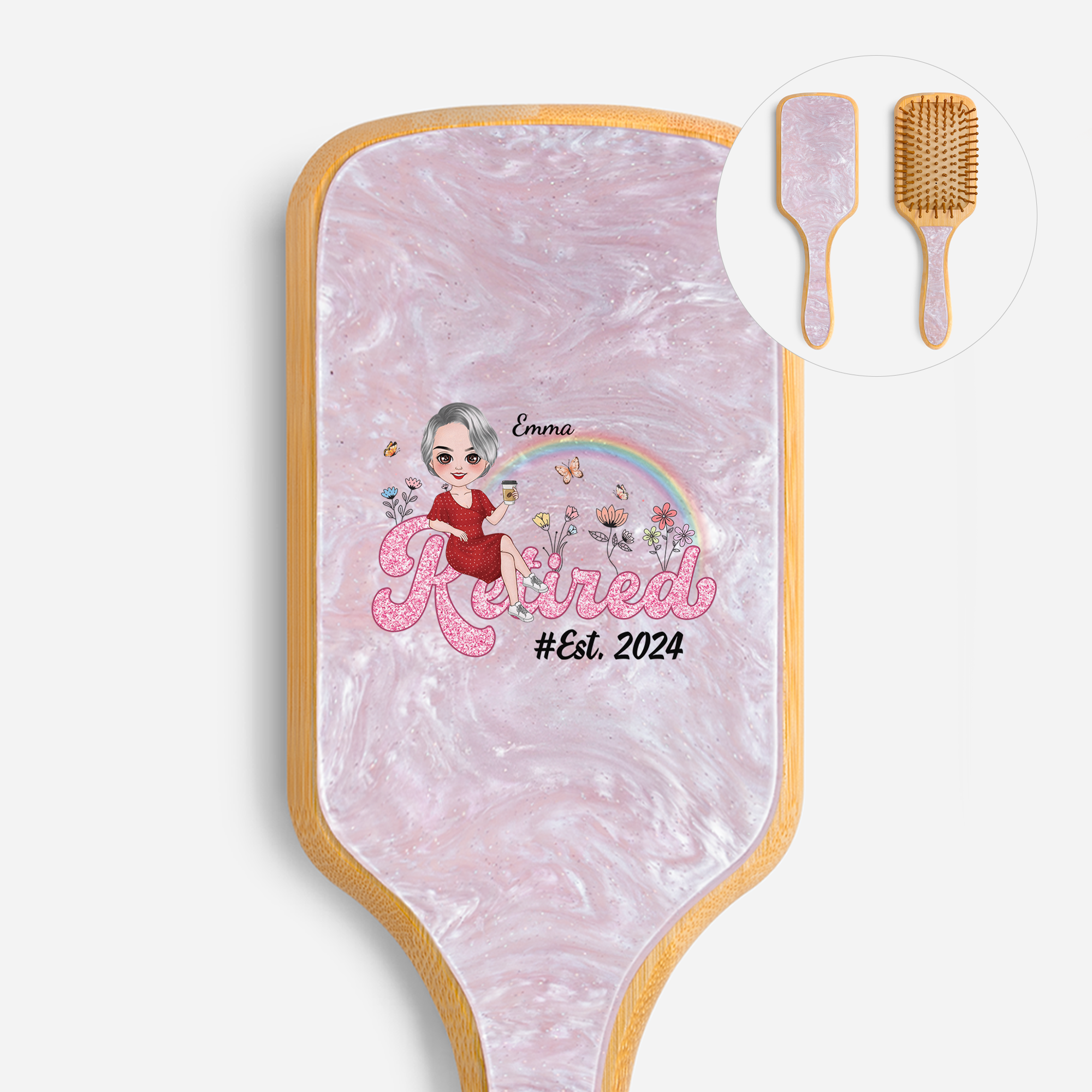 - Customised area: Personalised design on the back of the hairbrush.