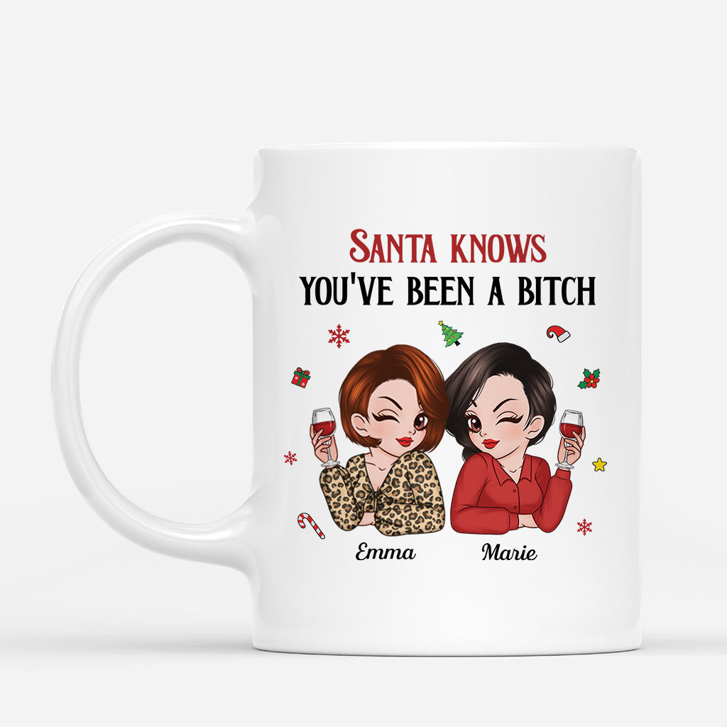 Personalised Santa Knows You've Been a Bitch Christmas Mug for Female Friends