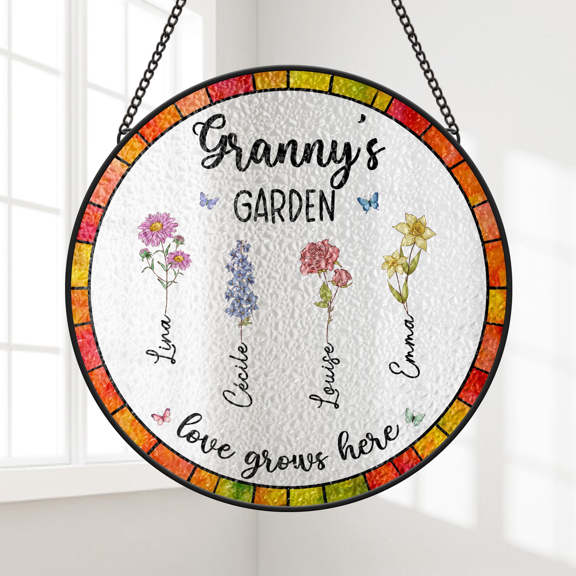 Personalised Stained Glass Grandma's Garden Suncatcher for Granny/Mum