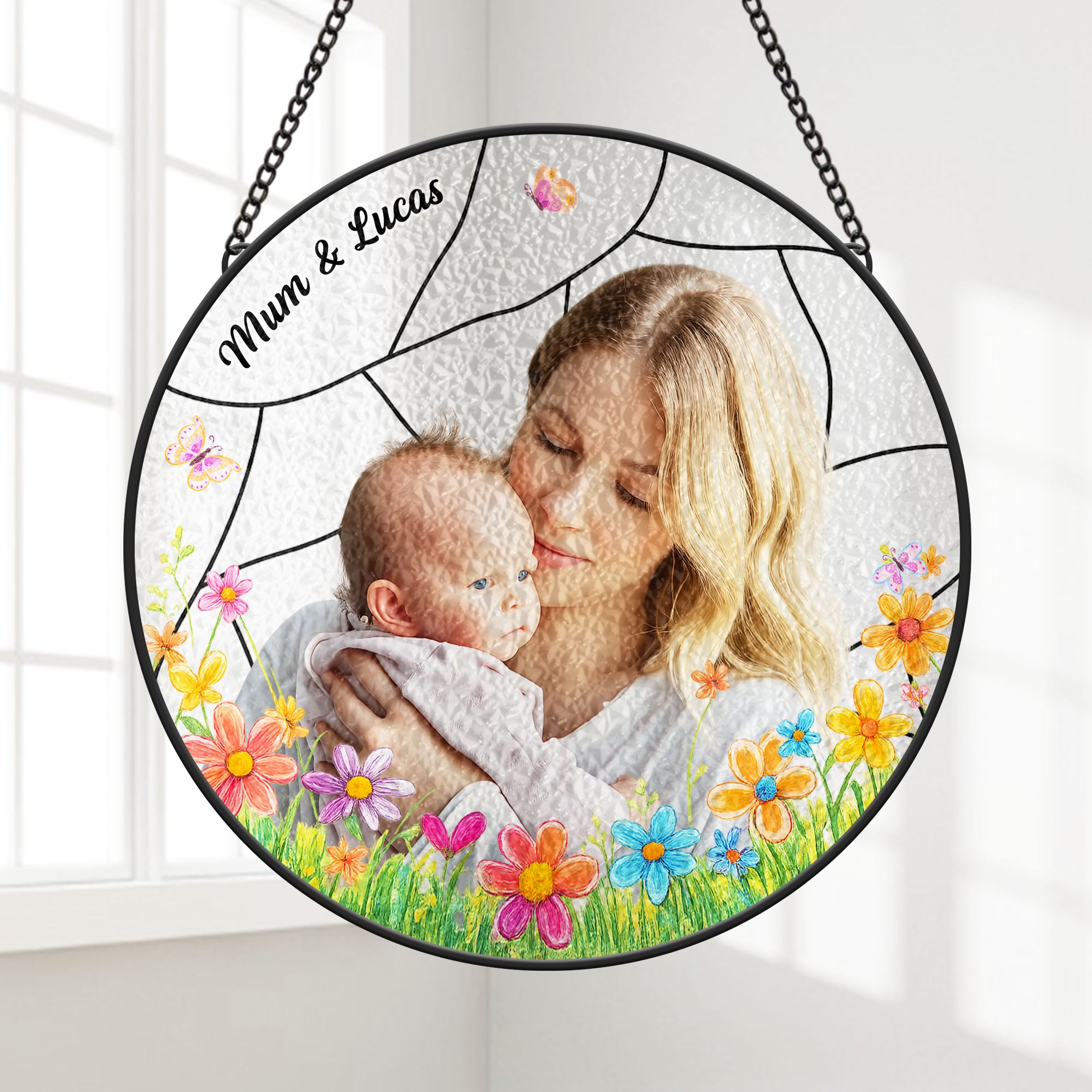 Personalised Stained Glass Photo Suncatcher for Mum/Granny
