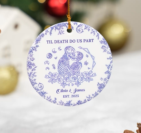 Personalised Til Death Do Us Part Ceramic Toile Christmas Ornament for Couples