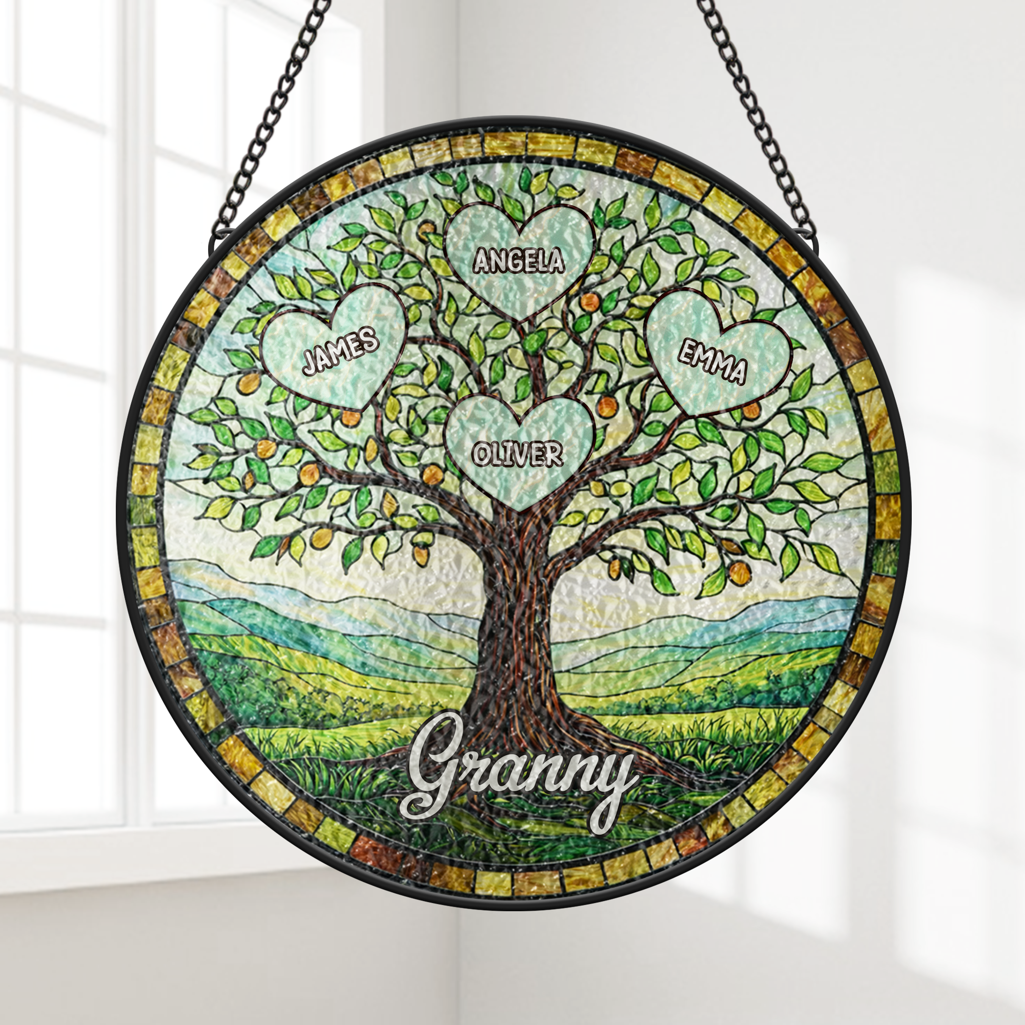 Personalised Tree of Life Stained Glass Suncatcher for Granny/Grandad