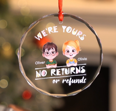 Personalised We're Yours No Returns or Refunds Glass Ornament
